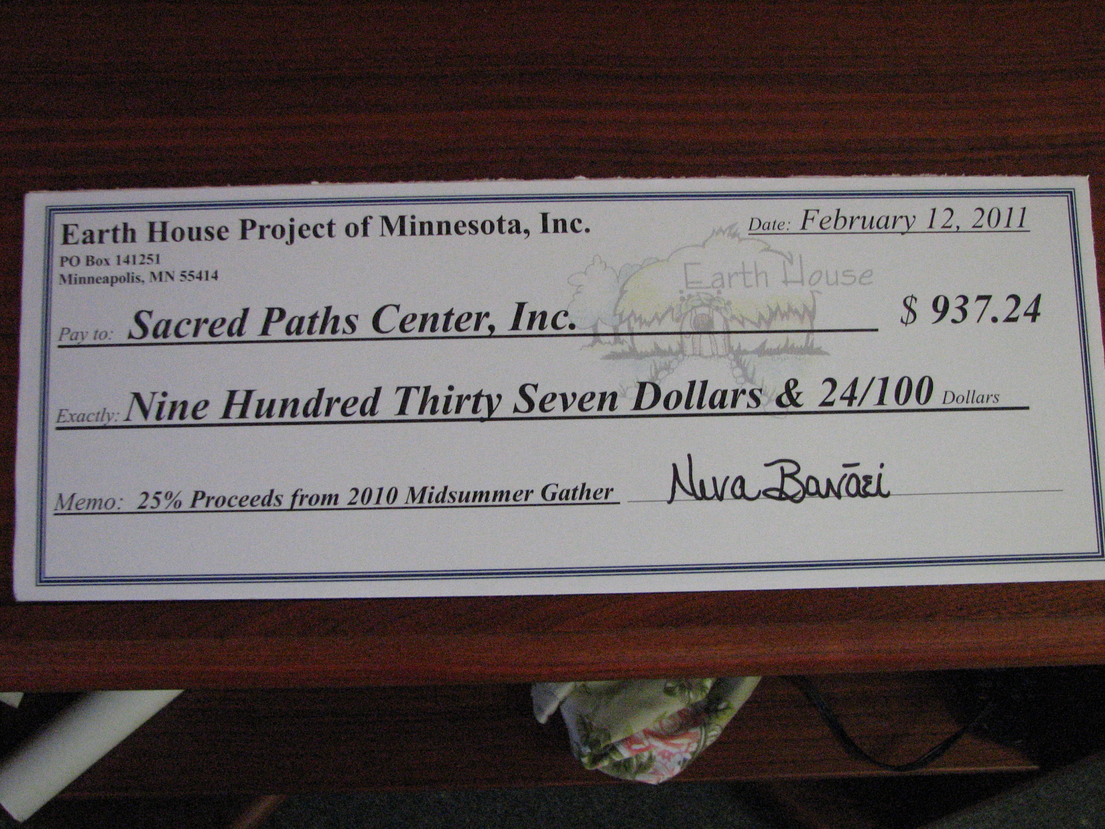 “I am elated we were able to present the SPC with such a substantial contribution. The mission of the Earth House Project of MN and that of the SPC run parallel and we are pleased to work hand-in-hand with them to support the community. It is my hope that our Midsummer Gather this year will allow us the make an even larger contribution next year!”