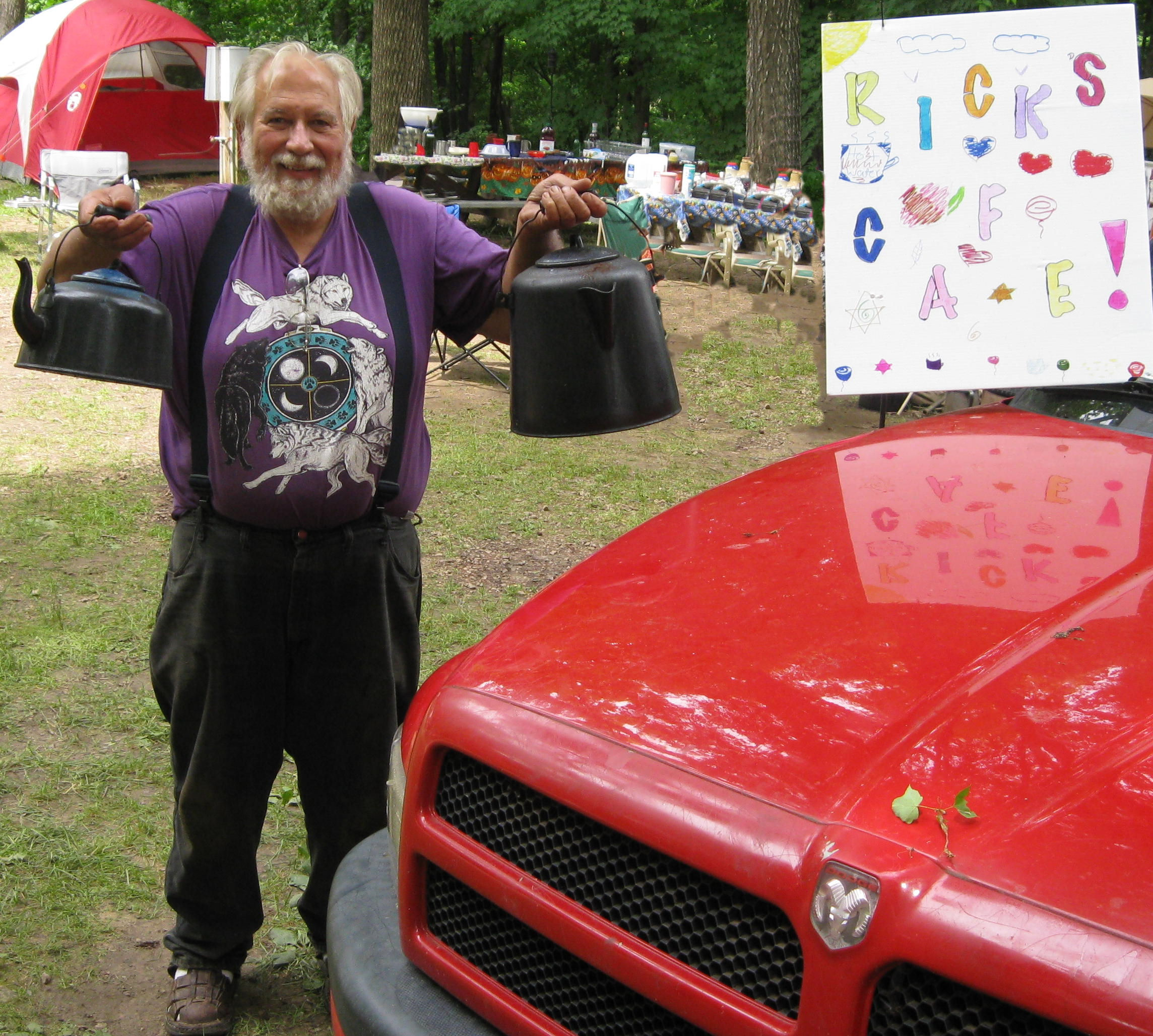 Every morning, Rick yells, “It’s coffee. It’s hot water too.” Then people gather at his camp for coffee, tea, and breakfast. It’s a contribution which earns him the affection of everyone in camp, of which he simply says, “Everybody likes coffee in the morning.”