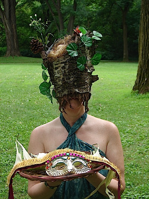 I attended the Northern Dawn Covenant of the Goddess (NorDCOG) Lammas Ritual with about 45 other people on Saturday July 23rd in Hidden Falls Park in St Paul, MN. The ritual was written by Veronica Cummer and presented by Veronica and Janus, with a cast assembled from the community. Titled “LAMASU: SACRIFICE AND BLISS” , the ritual was concise and powerfully presented. A variation of classic Lammas stories, this ritual was described as invoking, “the age-old themes of Life, Death and Rebirth, and will contain both Wiccan elements and elements of the Sorgitzak Path. Sorgitzak is based on interaction with and the teachings of a pantheon of Gods from the Old Forest.” The ritual told the story easily, and seemed to translate clearly to those present.