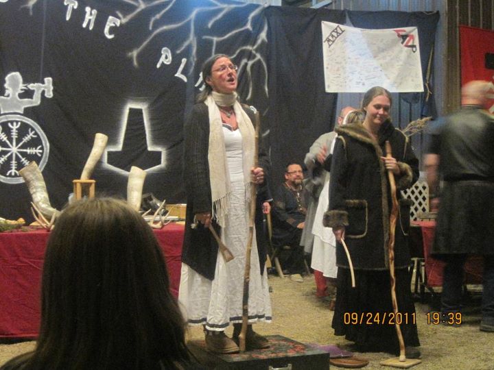 Many of you readers will know of Camp Gaea already. I first visited this sacred space in 2000 and again in 2001 when I played music for the Goddess Festival, an all women’s event. I was wholly impressed by the care taken in assuring that men did not enter the camp areas (even to suck out the toilets!), respect for multiple pathways, and sense of safety spiritually and physically. It was my deep wish and prayer of mine that the Northern/Heathen tradition could be represented at this amazing site. I was simply overjoyed to hear that JBK had begun to tend a Heathen Ve (worship space) on the grounds there. Through conversations and meetings we got to know one another and they asked me to be their honored guest at the first LATP in 2009. In 2010 they added the “Midwest Thing.” A Thing is where tribes/clans/families/kindreds who live far apart to meet in person and conduct business pertaining to the region. The parliament in Iceland and Norway is called the Thing (Ting).