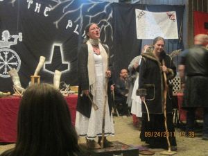 There were many workshops and “Viking games” events scheduled throughout Saturday. I was happy to have many women and some men attend my Volva Stav workshop. There are several groups using the stav technique in their ceremonial practice and we had some great sharing of how they are doing it and what more resources I can provide.