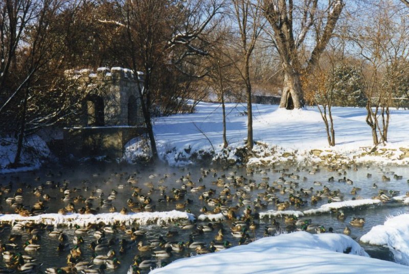 Susu's photo, Coldwater Spring; January 1998—This is called “the ducks photo”—very cold day, about minus-6-degrees—steam is coming off the reservoir water
