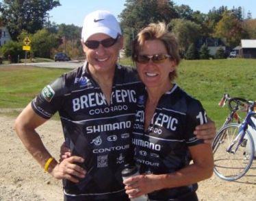 Johnson with fiancée Kate Prusack, whom he met at a bike race, touring New Hampshire on their bikes. photo credit The Forum
