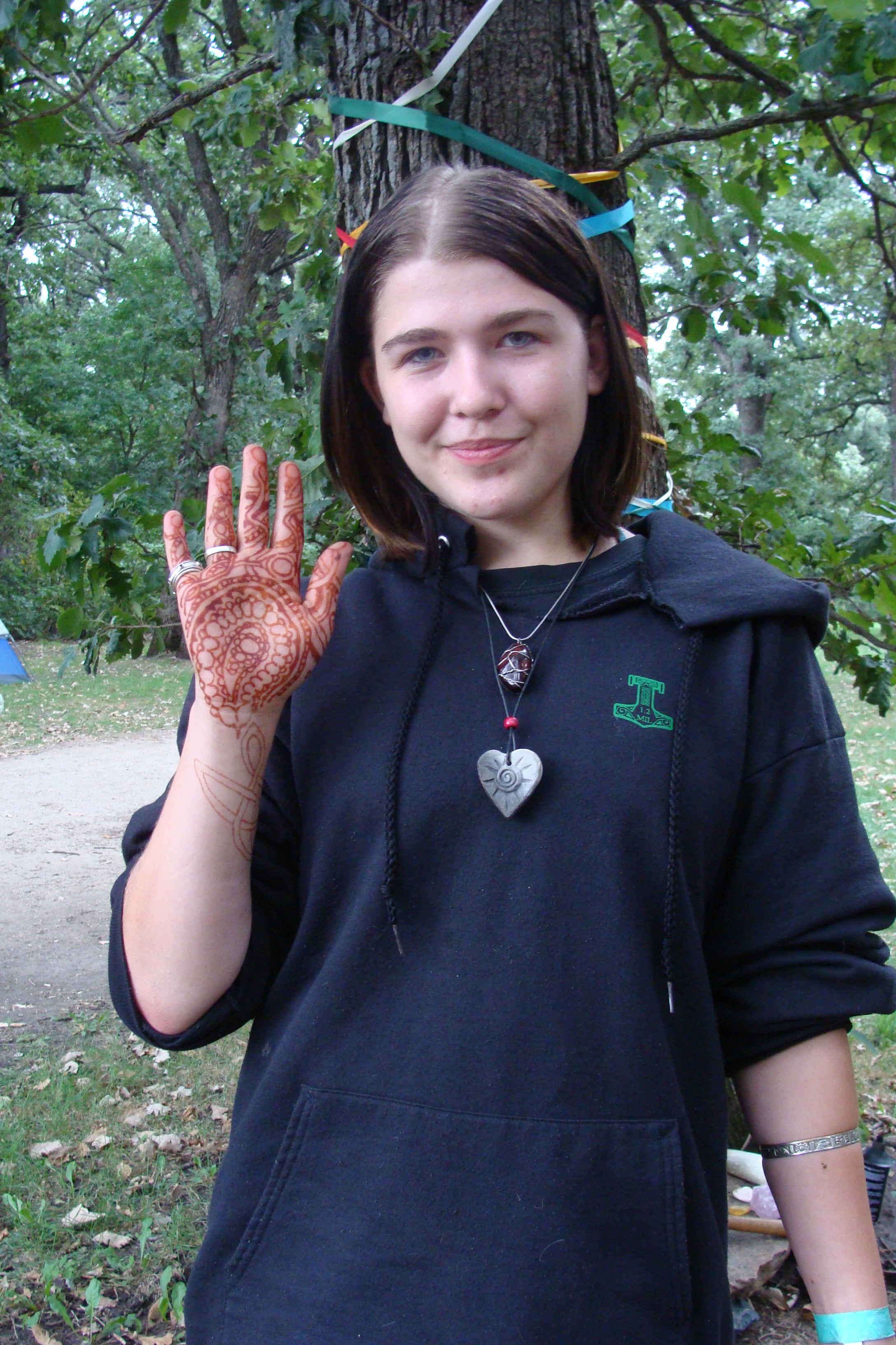 “Building the energy in the Rangoli, it was amazing. And doing the henna for one of our friend’s handfastings and she did henna on us as well.” Hemunset