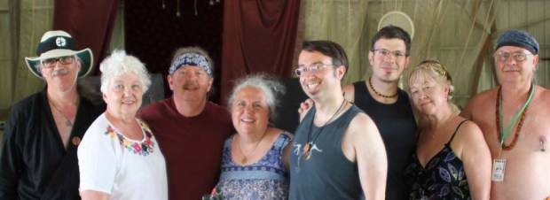 Linde started helping a friend, Mike Olson, create Corn Kings at Olson’s home in 1991. Starting in 1994 the practice moved to Linde’s property. Around 30 people attended Linde’s Samhain celebration that first year and it’s grown ever since. “One year, maybe 1997, in a bad winter storm there where as few as ten people to burn one a very simple one I built completely myself,” Linde said. “The last ten years it’s been between 60 and 120 people each year.” In 1998 Linde’s future wife Judy Olson (no relation to Mike Olson) began attending and a few years later was key to the celebration.