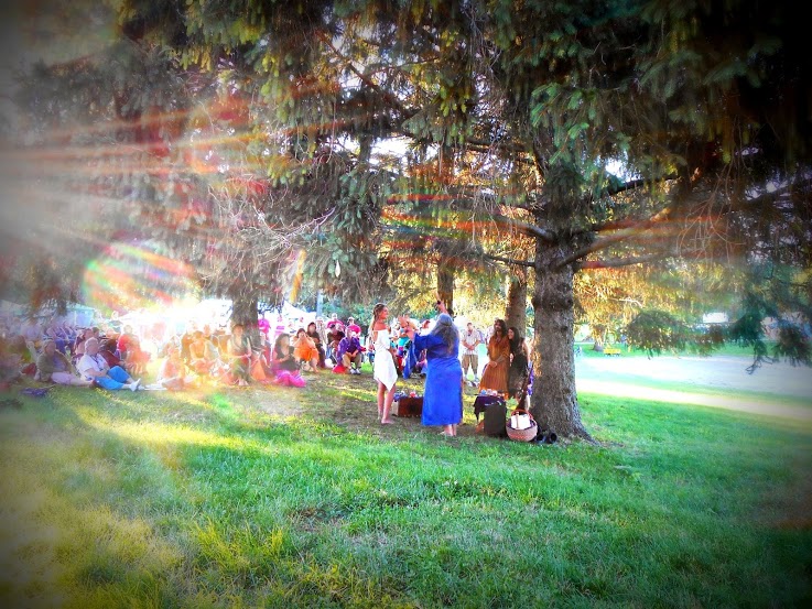 Finding a suitable partner is difficult for anyone. With more Pagans saying finding a partner who shares their values, if not their religion, the search for a match is even more difficult. How to overcome that challenge? Attend one of the large gatherings of Pagans at festivals such as Pagan Spirit Gathering (PSG). At this year’s PSG attendees were invited to a single’s meet and greet, attend the wedding of a couple who met at last year’s PSG, and wish Circle Sanctuary‘s Rev. Selena Fox and Dr. Dennis Carpenter, who met and later married at PSG, a happy 27th wedding anniversary.