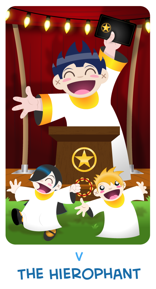 Another difference is the Hierophant. Blodgett says there are mostly negative portrays of the Hierophant in modern tarot decks, especially those aimed at non-Christian audiences, “The hierophant is a symbol of any religion that is organized, any group that comes together and has a leader. I’m re-infusing the joy of worship together, leaders helping others, and that’s really radical, in a way.”